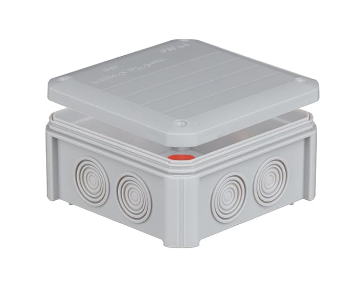 Home/Вироби/Junction boxes/Junction box for surface-mounting 114х114х57mm IP54 with cable inputs UNIKA PLANK IB602