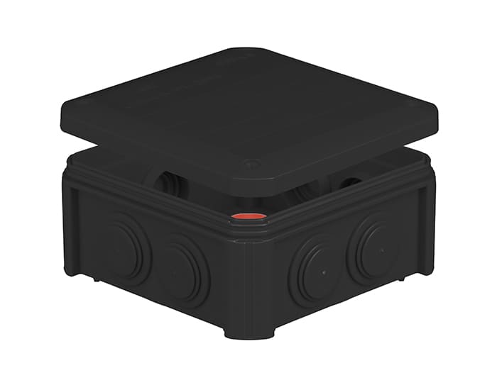 Junction box for Surface-mounting 114х114х57mm PP self-extinguishing 850°С IP55 with rubber cable glands UNIKA PLANK black IB601Vintage