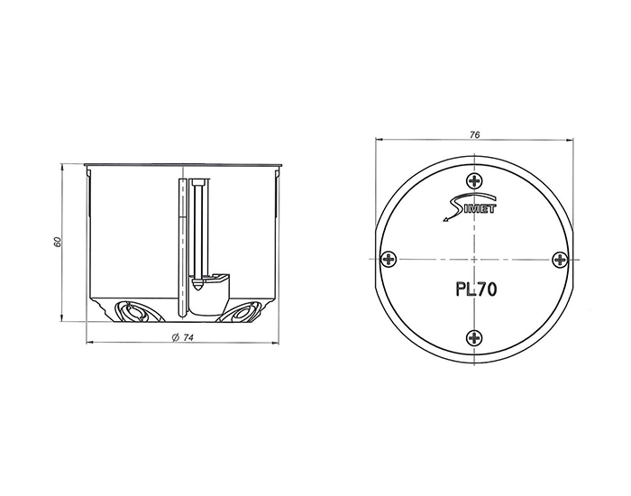 Коробка розподільча внутрішня Ø70 для порожніх стін набірний з кришкою SIMET PV70