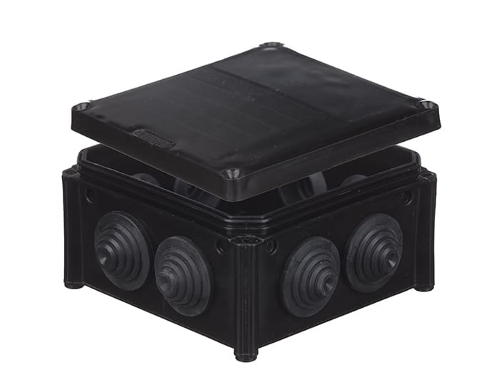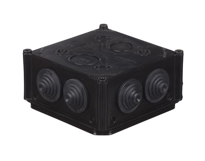 Коробка розподільча зовнішня 100x100x50мм поліпропілен самозатухаючий 850°С IP55 з сальниками UNIKA PLANK чорна IB006Vintage