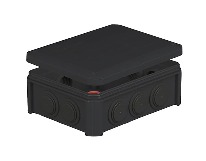 Коробка розподільча зовнішня 150х116х67мм поліпропілен самозатухаючий 850°С IP55 з сальниками гумовими UNIKA PLANK чорна IB1001Vintage