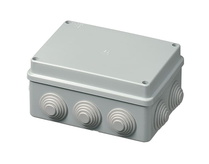 Коробка розподільча зовнішня 150×110х70мм поліпропілен самозатухаючий 650°С IP55 з сальниками гумовими ELETTROCANALI EC400C5