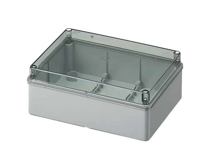 Коробка розподільча зовнішня 190×140х70мм поліпропілен самозатухаючий 650°С IP56 з суцільними стінками з прозорою кришкою ELETTROCANALI EC420C6
