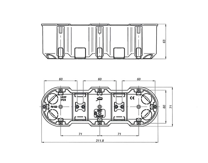 Коробка установча потрійна глибока для бетону з шурупами SIMET M3x60DF