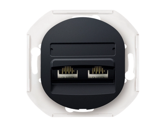Механізм розетка 2-на комп’ют. 2*RJ45 Cat5e, UTP, Aling-Conel EON, чорний матовий