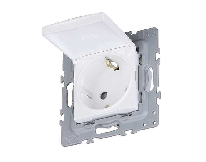Розетка 1-на з криш. з з/к, ШУКО EFAPEL Latina 16А, 250V білий матовий