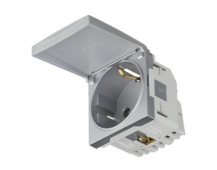 Розетка 1-на з криш. з з/к, ШУКО EFAPEL QUADRO 16А, 250V алюміній