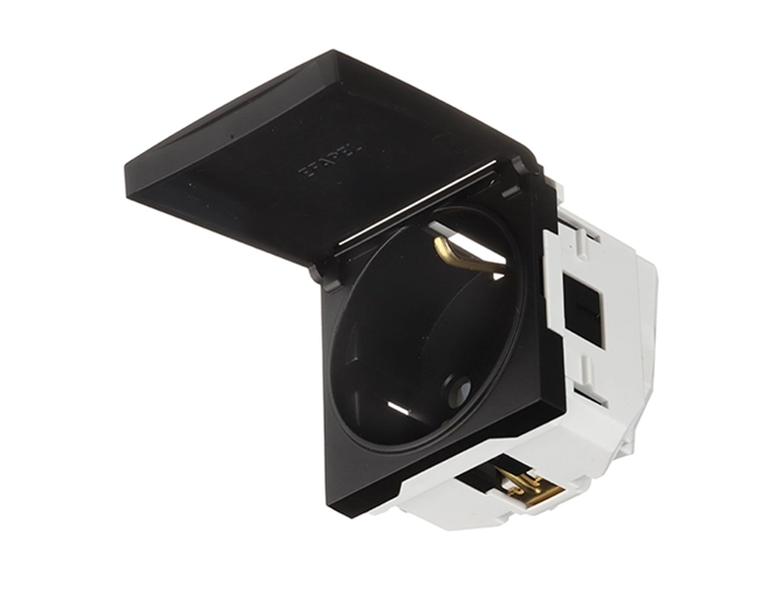 Розетка 1-на з криш. з з/к, ШУКО EFAPEL QUADRO 16А, 250V чорний матовий