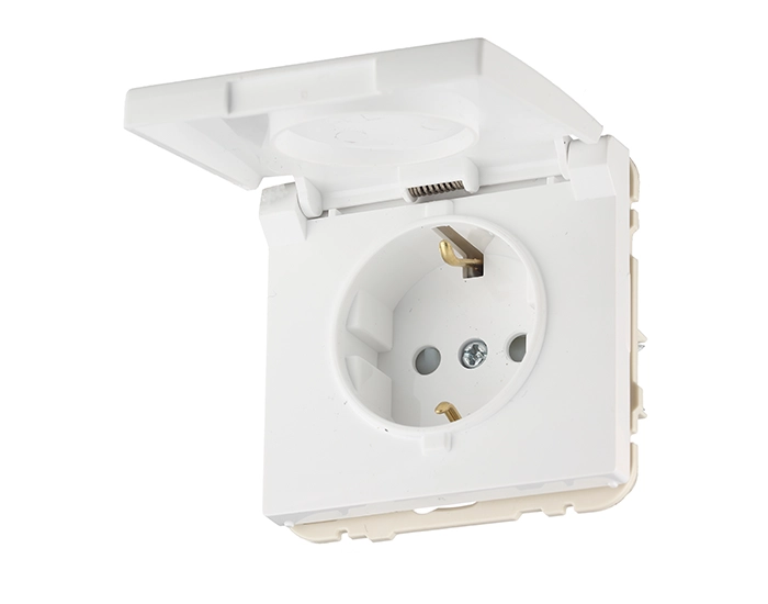 Розетка 1-на з кришкою 2P+Z, ШУКО Efapel Apolo 16А, 250V білий глянцевий
