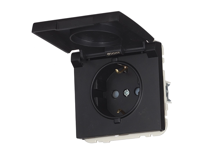 Розетка 1-на з кришкою 2P+Z, ШУКО Efapel Apolo 16А, 250V чорний матовий