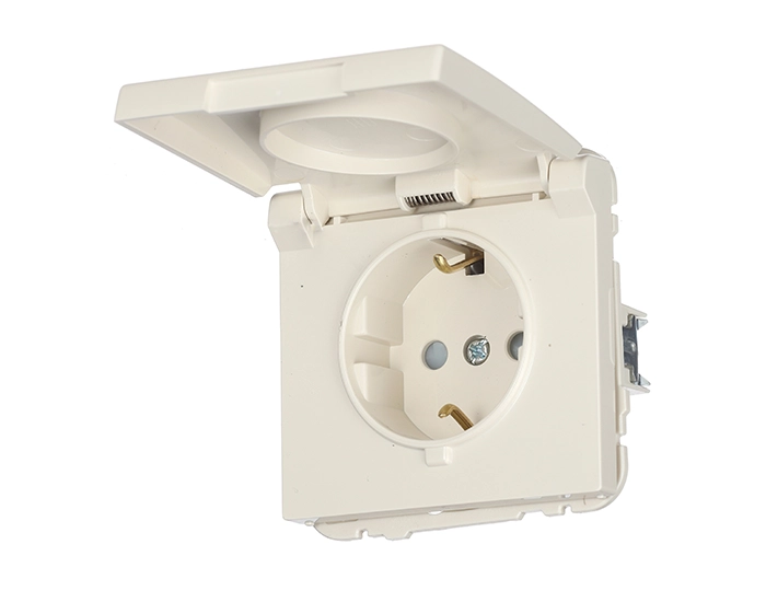 Розетка 1-на з кришкою 2P+Z, ШУКО Efapel Apolo 16А, 250V слонова кістка