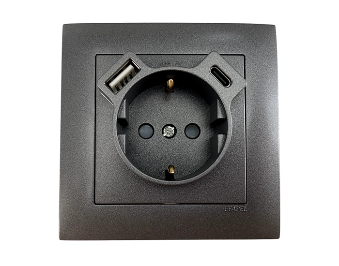 Розетка 2P+E 230V/16A з зар.прист. USB тип A+C Efapel Logus металік графіт.