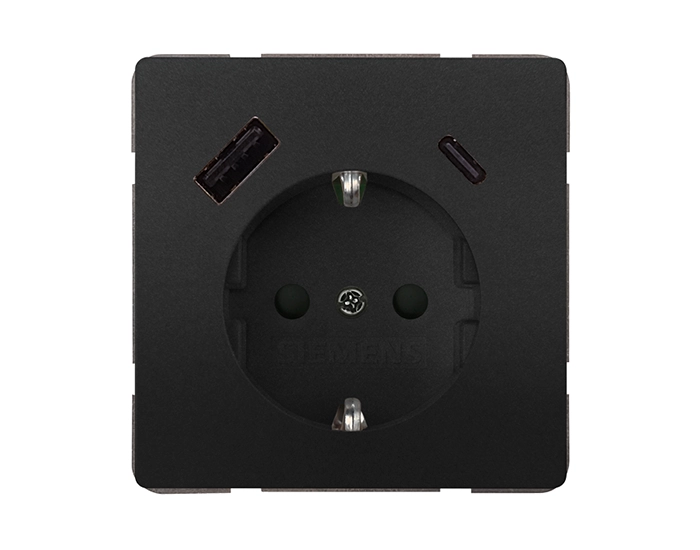 Розетка 2P+E 230V/16A з зар.прист. USB тип A+C SIEMENS DELTA Style чорний коссо