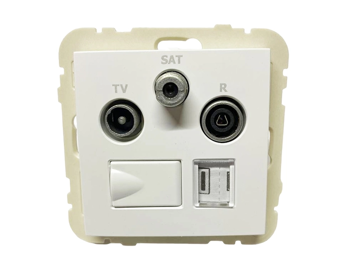 Розетка мультимедійна R-TV-SAT-RJ45 (Cat.6), металік крижаний