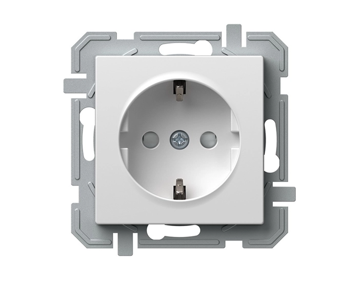 Розетка одинарн. з з/к, з шторками, 250V/16A TEM LOGIQ, біла