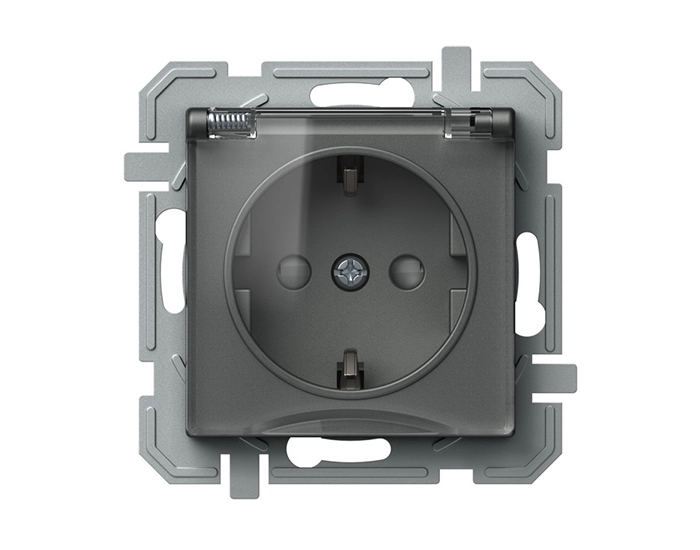 Розетка з кришкою, з з/к, з шторками, 250V/16A TEM LOGIQ, антрацит