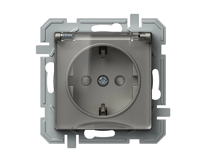 Розетка з кришкою, з з/к, з шторками, 250V/16A TEM LOGIQ, титан
